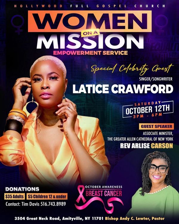 Join our Sister Church, Hollywood Full Gospel Baptist Cathedral on Saturday, October 12th for Women on a Mission, an event in support of October Breast Cancer Awareness.